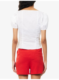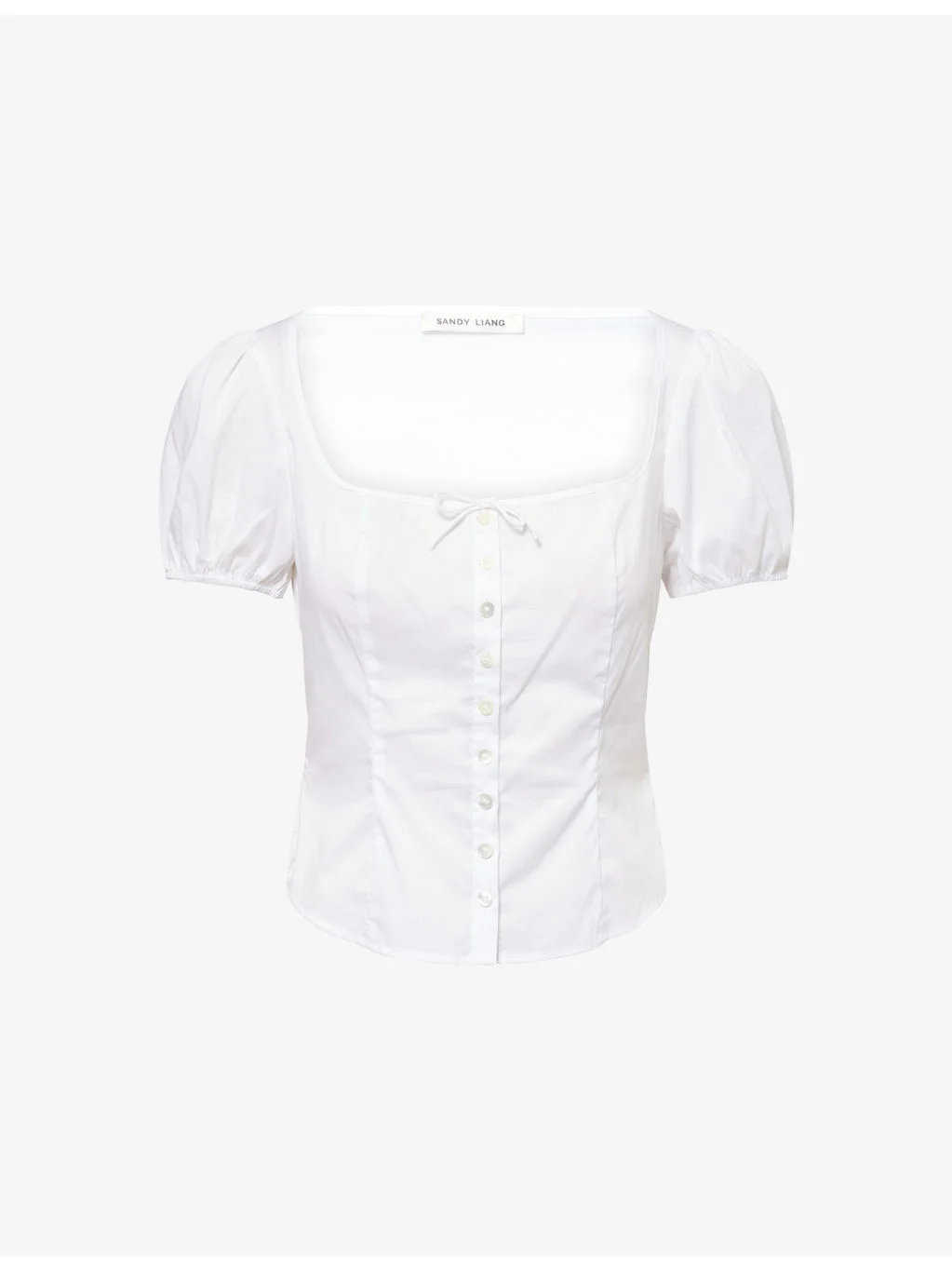 PRODUCT DETAILS - Sandy Liang cotton top - 100% cotton - Button fastening - Close fitting, scoop neck, short puff sleeves, panelled, bow at front - Machine wash mild - True to size - Size small: length 18in / 45.7cm - Model is 5ft 10in/1.78m and wears a size small - Lightweight, non-stretch Ref: R04488308