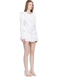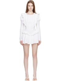 Stretch cotton jersey minidress. · Ruffled trim throughout · Round neck · Gathering at shoulders · Zip closure at back · Briefs-style lining with press-stud fastening Supplier color: White 90% cotton, 10% lycra. Made in United States 261677F052006