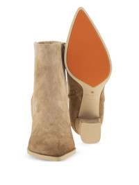 65mm suede ankle boots Highlights - Beige - Side zip fastening - Pointed toe - Branded insole - Block heel Made in Italy Composition Outer: Suede 100% Sole: Rubber 100% Lining: Calf Leather 100% SIZE & FIT Measurement HEEL 2.55 in(6.5 cm)