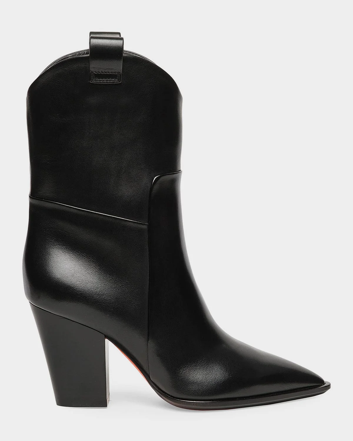 The "Sharla" ankle boots by Santoni are crafted from smooth leather 3.25 in / 85 mm block heel Pointed toe Pull-tabs at collar Side zip closure Leather lining and outsole Made in Italy