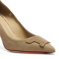 Reimagining an icon of Santoni’s enduring legacy, this version of the Sibille pump combines refined craftsmanship with glamorous elegance. Crafted from suede, it features a tonal covered double-buckle detail for a streamlined look that pairs effortlessly with endless looks. Styled with a flattering tapered toe and slender stiletto heel. Product details Product ID: WDID71207HI2TMGDM23 - Crafted from suede - Color: beige - Tapered toe - Double-buckle-inspired detail - 8.5 cm stiletto heel - Leather sole with rubber insert - Printed Santoni logo on the insole - Made in Le Marche, Italy