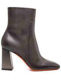 90mm leather ankle boots Constructed from smooth leather and arriving in a sleek grey hue, these Santoni boots are defined by their high block heel and square toe. Highlights - Grey - Calf leather - Polished finish - Square toe - Side zip fastening - High block heel Made in Italy Composition Outer: Calf Leather 100% Lining: Calf Leather 100% Sole: Rubber 100%, Calf Leather 100% SIZE & FIT Measurement CIRCUMFERENCE 8.66 in(22 cm) HEEL 3.54 in(9 cm) HEIGHT 5.9 in(15 cm)