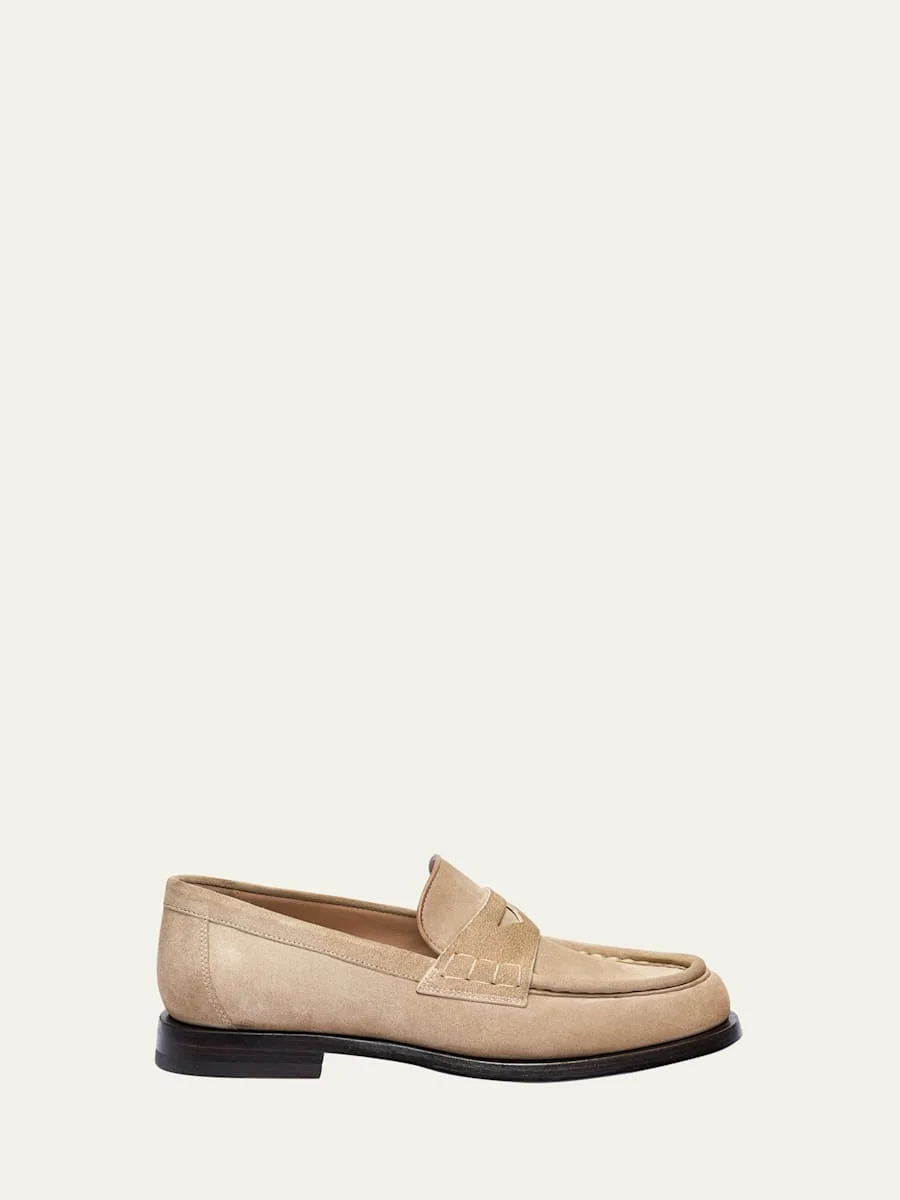 Santoni "Airglow" classic loafers in suede Flat heel Round moc toe Notched vamp with keeper strap Slip-on style Leather lining Leather outsole Made in Italy Online Inquiries: BGS21_X6YC6| Store Inquiries: #5052389