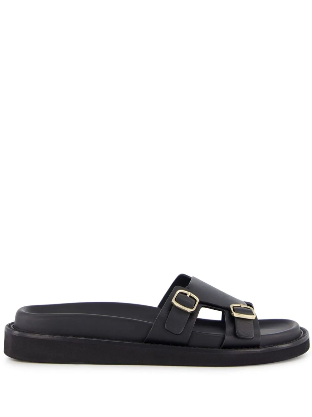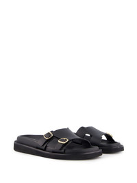 Amalfi sandals Highlights - Black - Calf leather - Smooth grain - Gold-tone hardware - Double buckle fastening - Almond open toe - Slip-on style - Branded footbed - Flat rubber sole Made in Italy Composition Sole: Calf Leather 100% Lining: Calf Leather 100% Outer: Calf Leather 100% SIZE & FIT Measurement HEEL 0.78 in(2 cm)