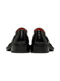 Handcrafted buffed leather loafers in black. · Almond moc toe · Strap with cutout at vamp · Serrated detailing at welt · Grained leather lining · Stacked leather midsole · Buffed leather outsole with rubber injection Supplier color: Black