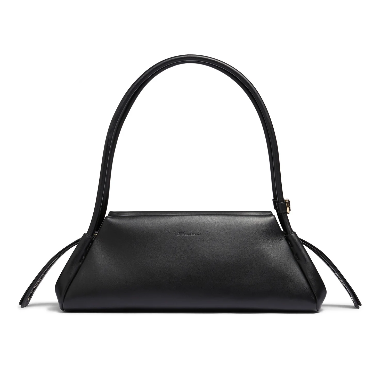 Clean geometric lines and astonishingly soft leather: the charm of Santoni’s latest bag lies in the powerful allure of contrast. Fusing classic with contemporary, this accessory is defined by a rigid trapeze silhouette, featuring tonal leather handles and a small metal buckle: an enduring symbol of the Maison’s DNA. A long zip closure ensures easy access to its spacious interior, equipped with various pockets to keep your belongings neat and organised. Product details Product ID: DFBBA2794BAHFRYN01 - Crafted from leather - Color: black - Leather twin handles - Small decorative metal buckle - Zip closure - Flat inside pockets - Debossed Santoni logo on the front - Made in Le Marche, Italy