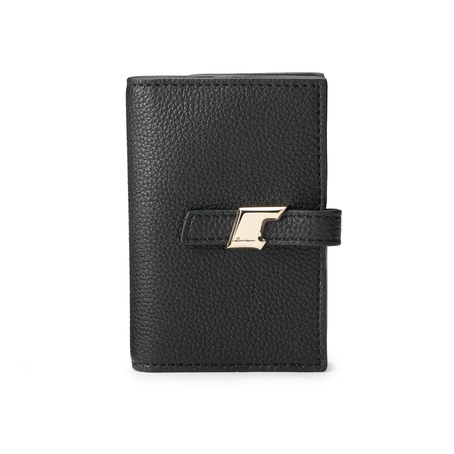 This card holder is devoted to the modern man seeking exceptional quality and Santoni style in the everyday. Its refined gusset construction features two inside compartments to keep cards and other small essentials organised. Crafted from soft tumbled leather with a metal accent on the strap that recalls the lines of our hallmark double buckle. Product details Product ID: DFPPA2628FOHDBCN01 - Crafted from tumbled leather - Color: black - Flap closure - Double-buckle-inspired detail - 2 fold-out compartments - Made in Le Marche, Italy