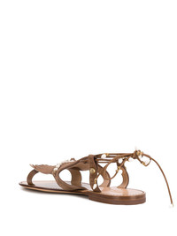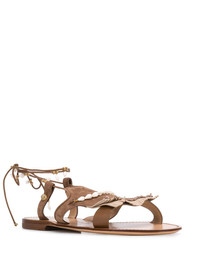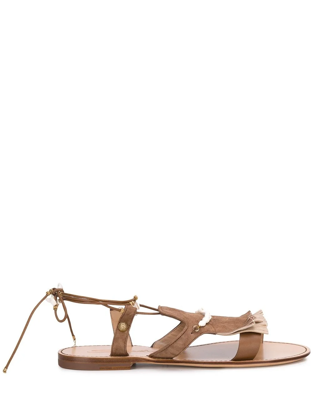 open toe beaded-fringed sandals Marron brown suede open toe beaded-fringed sandals from Santoni featuring a tie fastening, an open toe, a fringed design, beaded embroidery, a flat sole and a branded insole. Made in Italy Composition Suede 100% SIZE & FIT Measurement HEEL 0.59 in(1.5 cm)