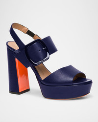 - Santoni "Bruxel" sleek calf leather platform sandals - 3.00 in / 75 mm block heel - Open toe - Mid-vamp buckle strap - Stretch slingback support - Leather outsole - Lining: Leather - Made in Italy