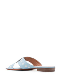 crossover straps sandals blue leather open toe crossover strap at the toe low heel Made in Italy Composition Outer: Leather 100% Lining: Leather 100% Sole: Leather 100% SIZE & FIT Measurement HEEL 0.78 in(2 cm)