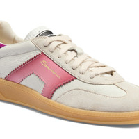 The new DBS Oly sneaker is an authentic expression of Santoni’s DNA. This style reimagines the classic ‘70s tennis shoe, updating its retro aesthetic with modern functionality and refined materials. Santoni’s signature double-buckle detail in elegant gradated leather enriches the sides of its leather and suede silhouette, borrowed from our formal footwear edit and transformed into an emblem of modern style. Product details Product ID: WBPL61221FARCQUII60 - Crafted from leather and suede - Color: white and purple - Gradated leather double buckle-inspired detail on the sides - Lace-up fastening - Natural rubber cupsole - Santoni lettering moulded into the tread - Made in Le Marche, Italy