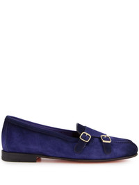 double-buckled moccasins Highlights - Prussian blue - Leather - Suede - Piped-trim detailing - Round toe - Double buckle fastening - Slip-on style - Branded leather insole - Flat rubber sole Made in Italy Composition Outer: Leather 100% Sole: Leather 100% Lining: Leather 100%