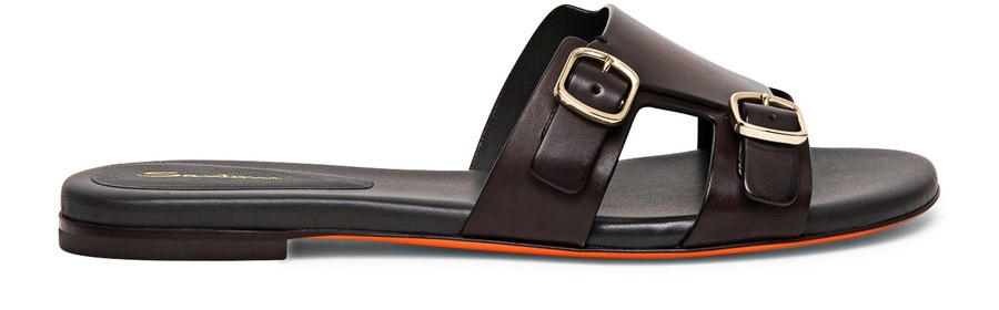 DESCRIPTION - Open round toe - Flat heel - Contrast details - Logo-printed insole - Pull-on design DETAILS AND CARE MATERIAL: Upper : Calf Leather 100% / Lining : Lamb Leather 100% / Sole : Leather 100% HEEL HEIGHT: 0.5 cm / 0.2 " COLOR: dark_brown COUNTRY OF MANUFACTURE: Italy PRODUCT CODE: SANM9339BRW68Z1100