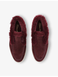 PRODUCT DETAILS - Santoni suede ankle boots - 100% suede - Slips on - Round closed toe, faux-fur edging, embossed branding at back - Specialist leather clean - Made in Italy - Upper: 100% suede - Lining: 100% fur - Sole: 100% rubber Ref: R04396421