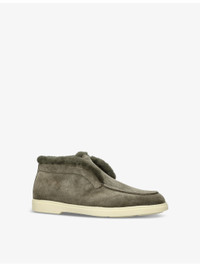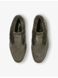 PRODUCT DETAILS - Santoni suede ankle boots - 100% suede - Slips on - Round closed toe, faux-fur edging, embossed branding at back - Specialist leather clean - Made in Italy - Upper: 100% suede - Lining: 100% fur - Sole: 100% rubber Ref: R04396422