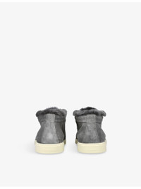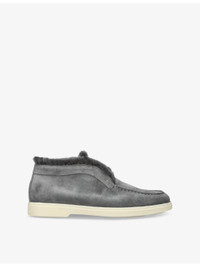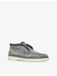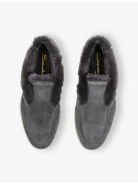 PRODUCT DETAILS - Santoni suede ankle boots - 100% leather - Slips on - Round closed toe, faux-fur edging, embossed branding at back - Specialist leather clean - Made in Italy - Upper: 100% leather - Lining: 100% leather - Sole: 100% rubber Ref: R04445800