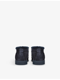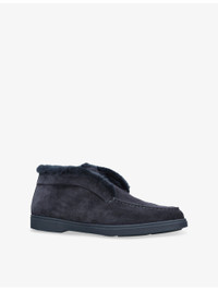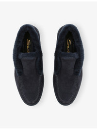 PRODUCT DETAILS - Santoni suede ankle boots - 100% suede - Closed almond toe, apron stitching at front, ankle length, shearling lining, embossed branding at back of midsole, tread sole - Specialist leather clean - Upper: 100% suede - Lining: 100% sheepskin - Sole: 100% rubber Ref: R04449894