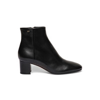 Women's black leather mid-heel ankle boot