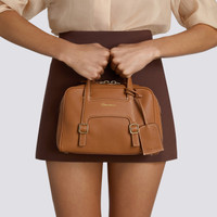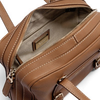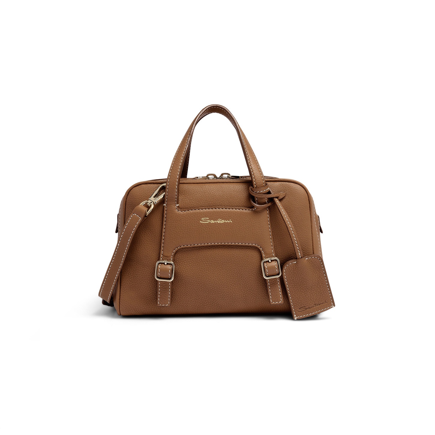 With its spacious design and distinctive handles that recall our iconic double buckle, this Santoni bag marries style with functionality. Crafted from tumbled leather, it features a two-way zip closure for maximum versatility and a practical inside pocket. Styled with an adjustable and detachable shoulder strap: wear it as a handbag or crossbody to suit your look. Product details Product ID: DIBBA2619DBHSIWM40 - Crafted from tumbled leather - Color: light brown - Top handles - Two-way zip closure - Inside zip pocket - Adjustable and detachable shoulder strap - Embossed Santoni logo on the front - Removable padlock and key charm - Made in Le Marche, Italy
