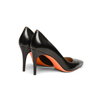 This mid-height pump promises morning-to-night comfort, while bringing effortless sophistication to jeans or a suit, and everything in between. Crafted from soft nappa leather that gently embraces the foot, its sleek silhouette features an elegantly tapered toe and our signature Arancio Santoni sole for an iconic flash of orange with each stride. Product details Product ID: WDID70945HI2NSZAN01 - Crafted from nappa leather - Color: black - Classic silhouette with tapered toe - 8.5 cm stiletto heel - Leather sole with rubber insert - Printed Santoni logo on the insole - Made in Le Marche, Italy