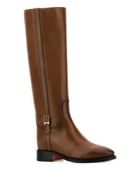 Mandy buckle-detail knee-high boots Highlights - Brown - Buckle detail - Gold-tone hardware - Flat sole - Knee-high - Pull-on design Made in Italy Composition Outer: Leather 100% Sole: Leather 100%, Rubber 100% Lining: Leather 100%