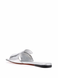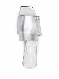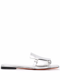 metallic slip on leather sandals silver leather metallic finish flat sole open toe buckle fastening Made in Italy Composition Lining: Leather 100% Sole: Leather 100% Outer: Leather 100% SIZE & FIT Measurement HEEL 0.78 in(2 cm) Sole height 0.39 in(1 cm)