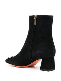 buckle-detail 50mm boots black/gold-tone calf suede/calf leather decorative buckle detail ankle-length square toe low block heel Made in Italy Composition Suede 100%