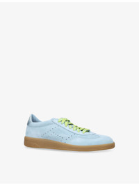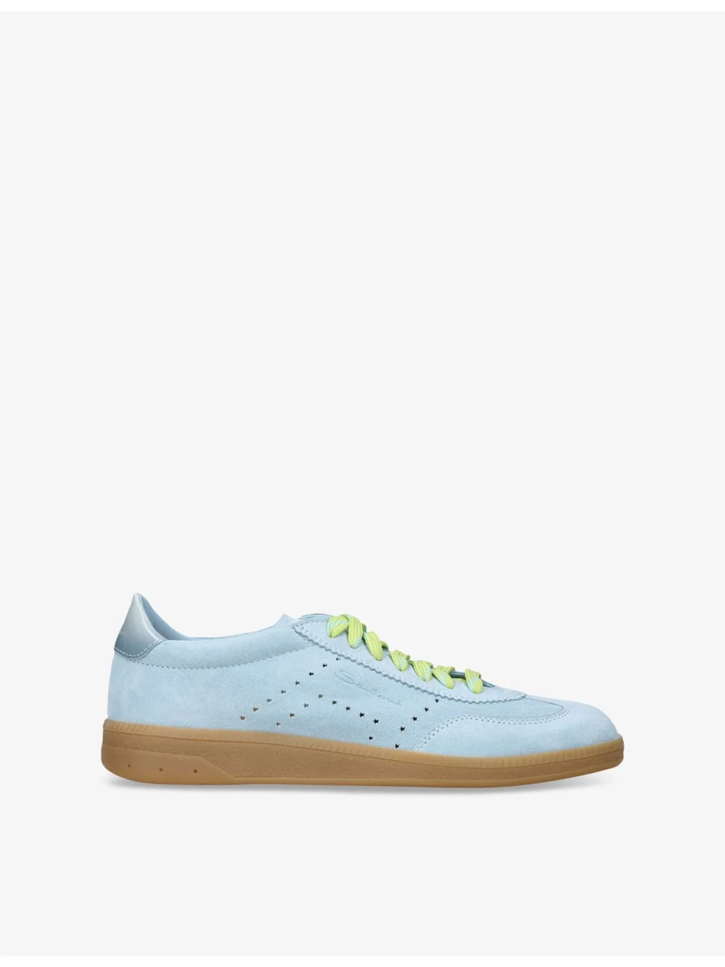PRODUCT DETAILS - Santoni suede low-top trainers - 100% suede - Lace-up fastening - Round closed toe, logo embossment to tongue and side, breathable perforations to side, contrast laces and sole - Specialist leather clean - Upper: 100% suede - Lining: 100% leather - Sole: 100% rubber Ref: R04389223
