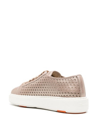 perforated leather sneakers Highlights - Beige/white - Calf leather - Metallic sheen - Perforated design - Logo patch at the tongue - Round toe - Front lace-up fastening - Unlined - Branded leather insole - Chunky segmented rubber sole Made in Italy Composition Leather 100% SIZE & FIT Measurement HEEL 1.57 in(4 cm) Sole height 0.78 in(2 cm)