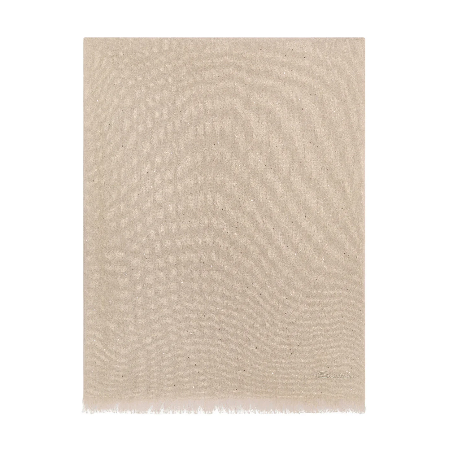 Iconic details, soft yarn and modern proportions: this women’s scarf is a true style statement. A refined blend of linen, cashmere and silk is delicately embellished with tonal sequins, radiating effortless elegance from every angle. Detailed with an embroidered logo in signature Arancio Santoni. Product details Product ID: AWFLC0048XXXLPAP12 - Crafted from linen, cashmere and silk - Color: pink - Tonal micro-sequins - Fringe trims - Embroidered Arancio Santoni logo - Made in Le Marche, Italy