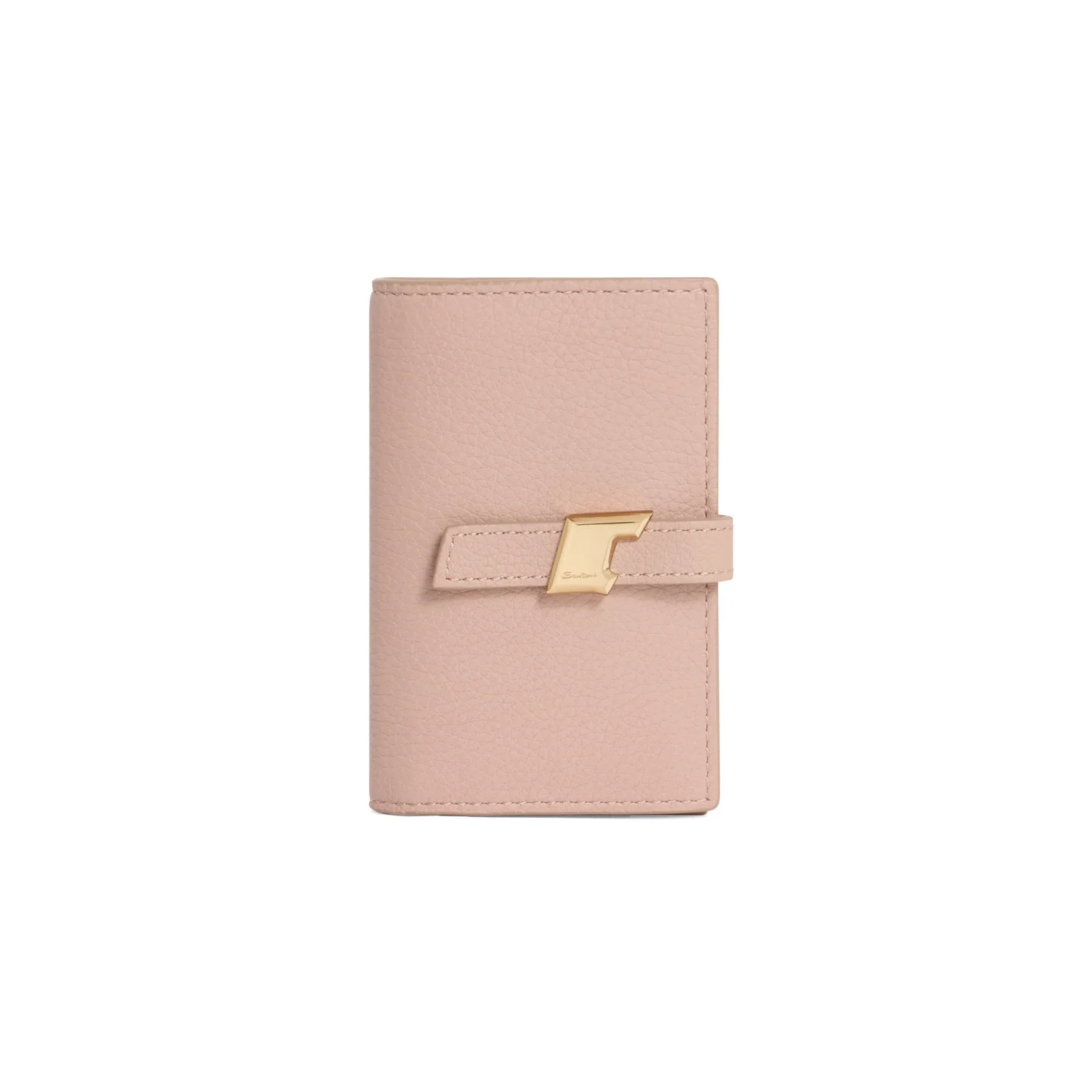This card holder is devoted to the modern man seeking exceptional quality and Santoni style in the everyday. Its refined gusset construction features two inside compartments to keep cards and other small essentials organised. Crafted from soft tumbled leather with a metal accent on the strap that recalls the lines of our hallmark double buckle. Product details Product ID: DFPPA2628FOHDBCP29 - Crafted from tumbled leather - Color: pink - Flap closure - Double-buckle-inspired detail - 2 fold-out compartments - Made in Le Marche, Italy