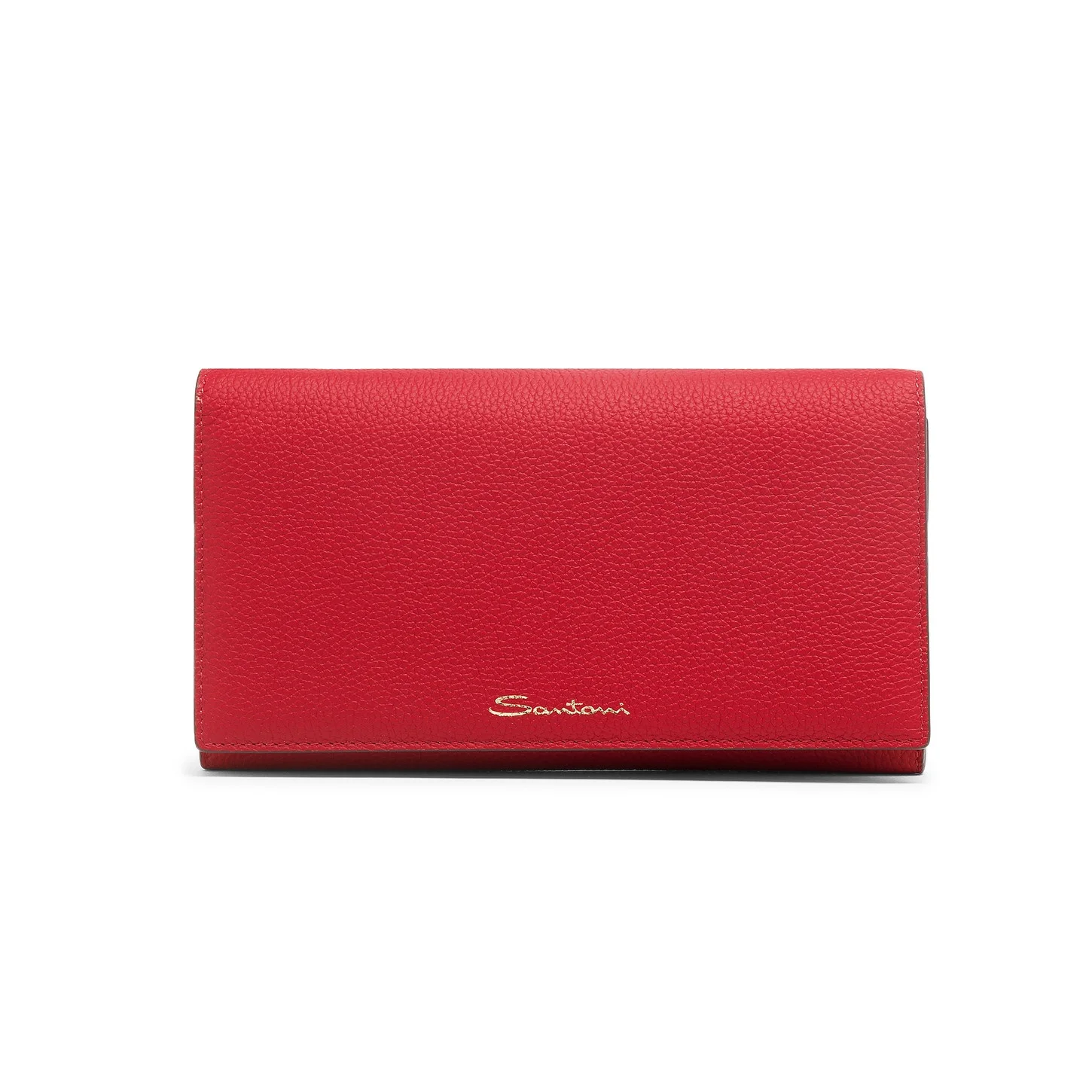 An authentic expression of refined femininity, this chain wallet marries Santoni's effortless elegance with flawless versatility. Its tumbled leather design is equipped with inside card slots, a metal logo charm, and a detachable shoulder strap, transforming it seamlessly from a crossbody bag to a simple wallet. Product details Product ID: DFPPA2490FOHTOGR50 - Women’s chain wallet - Crafted from tumbled leather - Color: red - Flap closure - Note compartment - Zip pocket - Detachable metal and leather shoulder strap - Dimensions: 21.3 cm x 11.5 cm x 3.5 cm - Logo charm - Printed Santoni logo - Made in Italy