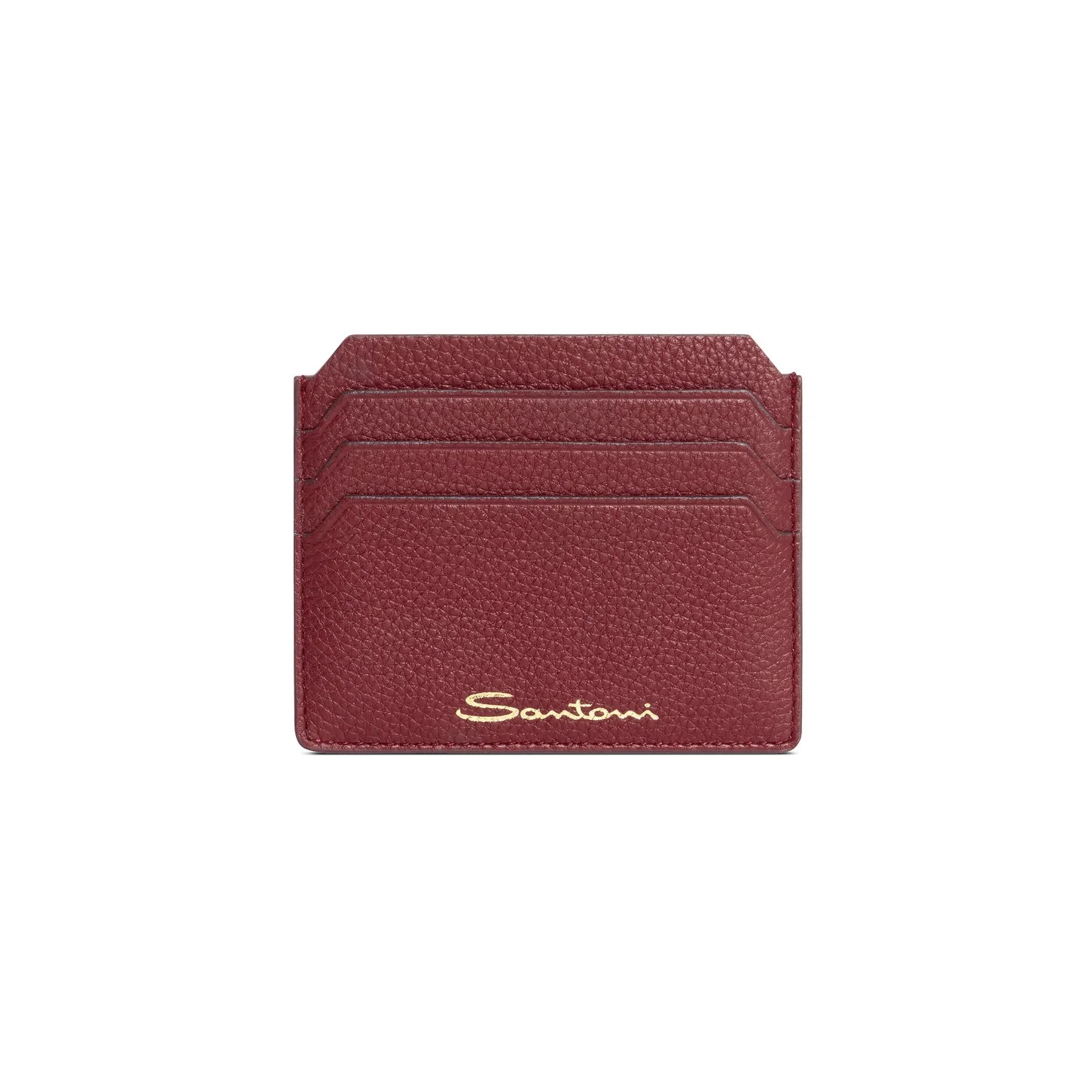 Fine tumbled leather and a sleek design for everyday functionality. This women’s cardholder features a central pocket and three bevelled-edge slots on each side. Embellished with an embossed Santoni logo on the front for a signature touch. Product details Product ID: DFPPA2693FOHSIWR83 - Crafted from tumbled leather - Color: red - Central pocket - 3 card slots per side - Embossed Santoni logo on the front - Dimensions: 10cm x 8,5cm x 0,5cm - Made in Le Marche, Italy