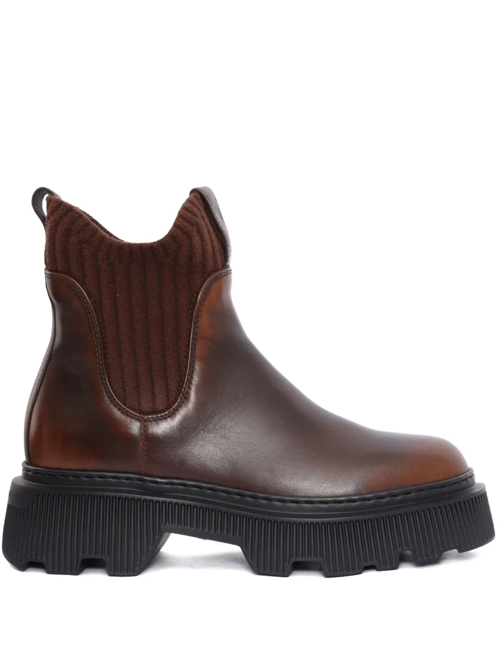ribbed mountain boots Highlights - Brown - Ribbed detailing - Rubber sole - Calf leather - Fleece wool - Goatskin Made in Italy Composition Outer: Calf Leather 72%, Nylon 12%, Elastane 2%, Micromodal 1% Sole: Rubber 100%, Bovine Leather (top grain) 88% Lining: Kid Wool 31%, Goat Skin 12%