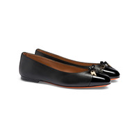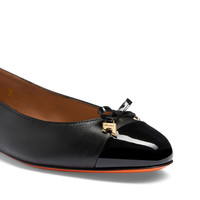 Women's black leather and patent leather ballet flat