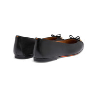 The ballet flat is a women’s wardrobe classic, reinterpreted by Santoni with balanced proportions and meticulous attention to detail. This style boasts a refined silhouette with a round patent toe and a small bow, delicately enriched with metal double-buckle tips. Its contrast leather sole stands out in our signature Arancio Santoni, finished with a rubber half-heel for maximum stability. Product details Product ID: WAAH71504KA1NOGON01 - Made from leather and patent leather - Color: black - Low-cut silhouette - Classic silhouette with round toe - Bow with double buckle tips - Leather sole with half rubber heel - Printed Santoni logo on the insole - Made in Le Marche, Italy