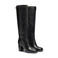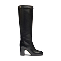 Wear every day, keep forever: this boot is crafted from exceptionally resistant materials by the hands of Santoni’s master artisans. Featuring a tubular shaft and a buckle detail that nods to the Maison’s iconic style codes, its fine leather construction showcases the depth of our “velatura” gradated finish. Built with a block heel and leather sole with rubber inserts for maximum comfort and stability. Product details Product ID: WSNU71746HI3NDYLN01 - Crafted from leather - Treated with Santoni’s “velatura” color-grading technique - Color: black - Tubular shaft with decorative strap - Inner side zip - 8.5 cm block heel - Leather sole with rubber insert - Printed Santoni logo on the insole - Made in Le Marche, Italy