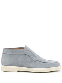 slip-on suede boots Highlights - Sky blue - Calf suede - Almond toe - Ankle-length - Branded footbed - Flat rubber sole - Slip-on style Made in Italy Composition Suede 100% SIZE & FIT Measurement HEEL 0.78 in(2 cm) Sole height 0.59 in(1.5 cm)