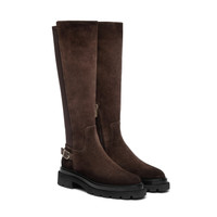 Modern style meets artisanal finesse and signature Santoni details. This boot is crafted from sophisticated suede leather, cinched in with a slim-fitting neoprene back for a flawless silhouette. An inner side zip makes it quick and easy to slip on and off, whilst a decorative strap pays homage to our iconic style codes with a refined double-buckle detail. Product details Product ID: WSEI71065GOMTHIOT50 - Women's boot - Crafted from suede - Neoprene back - Color: dark brown - Modern silhouette with round toe - Slim-fitting shaft - Inner side zip - Decorative strap - Leather lining - Chunky rubber sole - Printed Santoni logo on the insole - Made in Italy