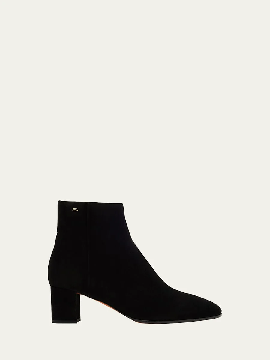 Santoni suede ankle booties 2.00 in / 50 mm block heel Round toe Side zip eases dress Leather outsole Lining: Leather Made in Italy Online Inquiries: BGS21_X6P2A| Store Inquiries: #4858701