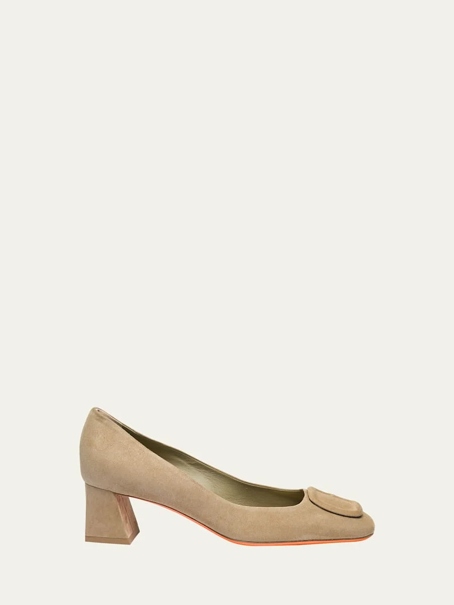 Santoni chic suede pumps with signature buckle-shaped detail 2.00 in / 50mm block heel Square toe Slip-on style Leather lining Leather outsole Made in Italy Online Inquiries: BGS21_X6YC2| Store Inquiries: #5052381
