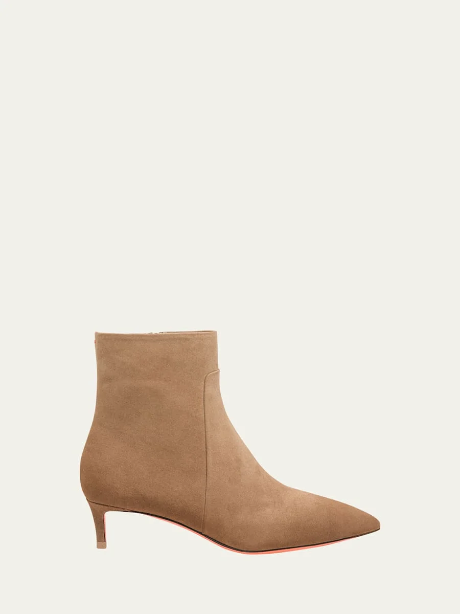 Santoni ankle booties in suede 1.75 in / 45mm kitten heel Pointed toe Side zip eases dress Leather lining Leather outsole Made in Italy Online Inquiries: BGS21_X6YC9| Store Inquiries: #5052392