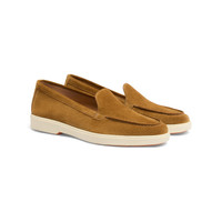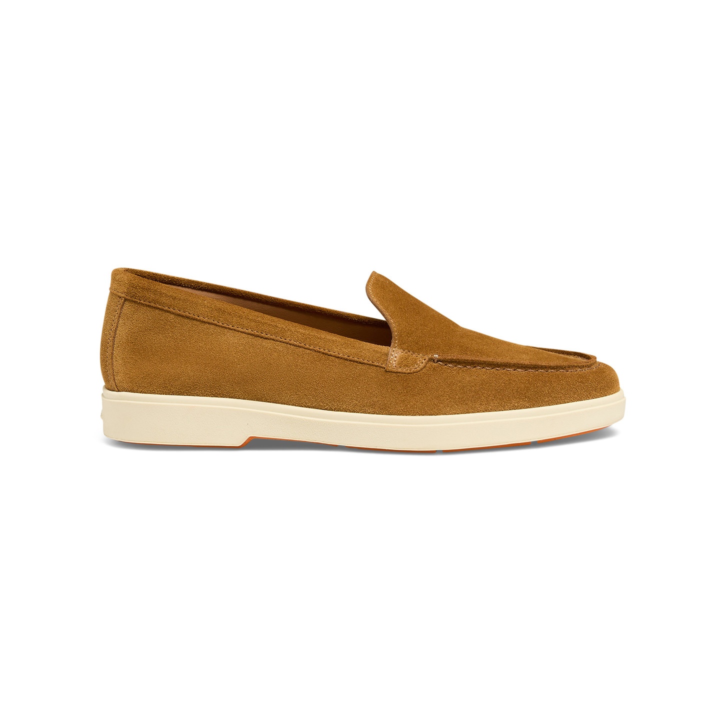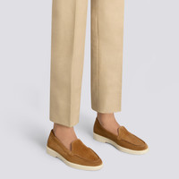 A casual take on the classic loafer, bringing refined elegance to everyday looks. Crafted from fine suede with a slim, lightweight design, this style expresses Santoni’s enduring vocation for beauty and quality. Its rubber sole stands out in our iconic Arancio Santoni, revealing a flash of orange with each stride whilst ensuring maximum comfort from morning to night. Product details Product ID: WUYA58856TISNPYLC50 - Crafted from suede - Color: brown - Apron stitching - Classic silhouette with round toe - Unlined - Smooth rubber sole - Arancio Santoni orange tread - Printed Santoni logo on the insole - Made in Le Marche, Italy