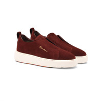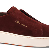 Santoni elevates the lightweight lines of the slip-on sneaker with exceptional materials and meticulous attention to detail. Crafted from luxuriously soft suede, this style features a pull tab on the heel so that it’s quick and easy to slip on and off. Complete with a flexible rubber sole for a comfortable stride from morning to night. Product details Product ID: WBCD61265BARTSAPB38 - Women's slip-on sneaker - Crafted from suede - Color: burgundy - Pull tab - Round toe - Rubber platform sole - Tread with orange double-buckle detail - Made in Italy