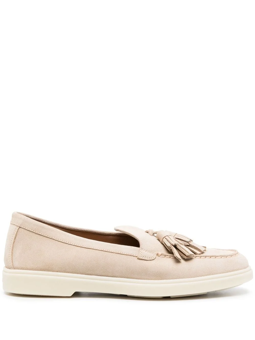 tassel-detail suede loafers almond beige calf suede tassel detail branded insole slip-on style round toe flat rubber sole Made in Italy Composition Suede 100% SIZE & FIT Measurement HEEL 0.78 in(2 cm) Sole height 0.59 in(1.5 cm)