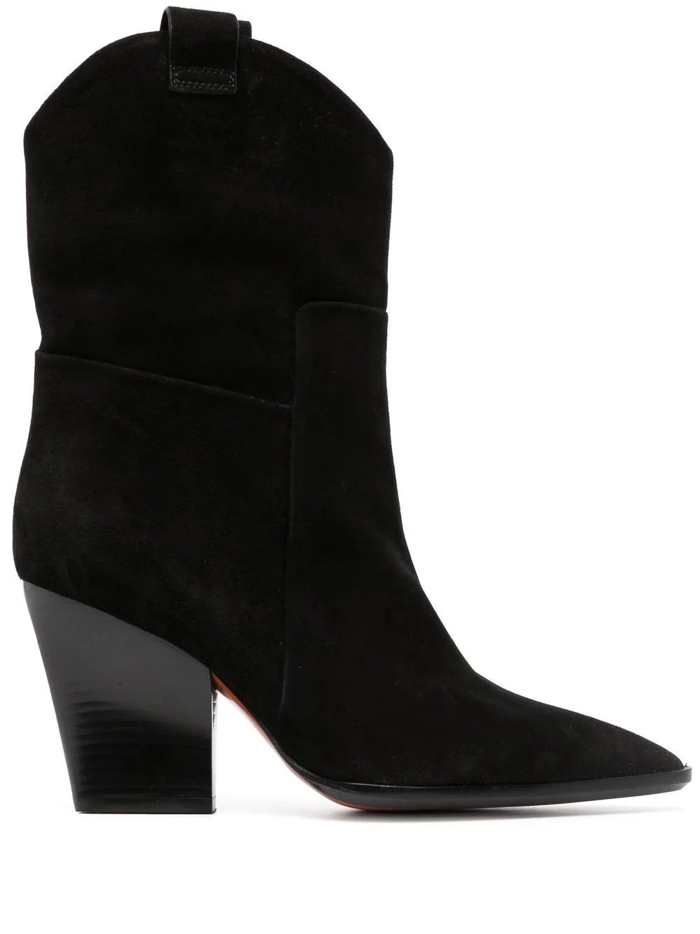 Western 90mm ankle boots black calf leather pointed toe double pull-tab at the opening high block heel Made in Italy Composition Outer: Calf Leather 100% Sole: Rubber 100%, Calf Leather 100% Lining: Calf Leather 100% SIZE & FIT Measurement CIRCUMFERENCE 11.81 in(30 cm) HEEL 3.54 in(9 cm) HEIGHT 6.69 in(17 cm)