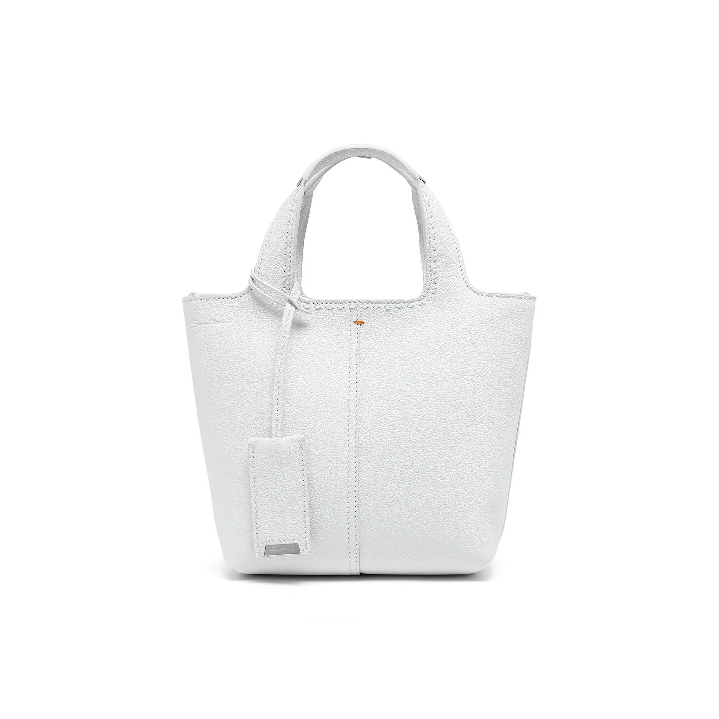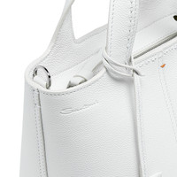 From office ensembles to off-duty looks: this shopper is a versatile essential for the modern woman. Its fine tumbled leather design is elevated with comfortable handles and an adjustable shoulder strap: endless versatility for every occasion. Complete with a handy mirror charm and an inside zip pocket. Product details Product ID: DIBBA2781BAASIWI48 - Crafted from tumbled leather - Color: white - Top handles - Zip closure - Inside zip pocket - Adjustable and detachable shoulder strap - Detachable mirror charm - Debossed Santoni logo - Dimensions: 21cm x 15cm x 9cm - Made in Le Marche, Italy