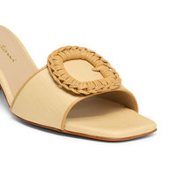 This women’s sandal explores Santoni’s rich legacy, reinterpreting it through an ultra-chic lens to bring fresh allure to endless looks. Crafted from raffia with tonal nappa leather trims, it’s enriched with a distinctive detail that reimagines our signature double buckle. Styled with a flattering block heel that promises exceptional comfort from morning to night. Product details Product ID: WHNA71493HA2TITYE80 - Made from raffia - Color: beige - Square toe - Buckle-shaped detail - 5 cm block heel - Leather sole - Printed Santoni logo on the insole - Made in Le Marche, Italy