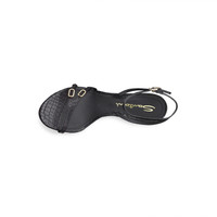 This sandal is a symphony of aesthetic sophistication and artisanal charm, bringing distinctive character to the most exclusive of occasions. Crafted from luxurious crocodile leather, it’s characterised by a sophisticated interplay of criss-cross straps that recall the iconic lines of our hallmark double buckle. Styled with a contrast leather sole to reveal a flash of classic Arancio Santoni with every stride. Product details Product ID: WPLL71656HA2TYFFN01 - Crafted from crocodile leather - Color: black - Almond-shaped toe - Double-buckle-inspired strap closure - Leather sole - 10.5 cm stiletto heel - Printed Santoni logo on the insole - Made in Le Marche, Italy