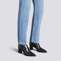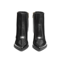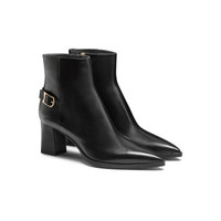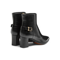 A women’s wardrobe classic, rewritten with fine materials, exquisite craftsmanship and attention to detail. This leather ankle boot flaunts a sophisticated silhouette that gracefully elongates the leg, harmoniously responding to your every stride with its robust mid-height heel. A zip on the inner side makes it easy to slip on and off, while a decorative strap on the back pays homage to Santoni’s iconic style codes. Product details Product ID: WTEZ71846PC4NVGBN01 - Crafted from leather - Color: black - Back decorative buckle - Tapered toe - Inner side zip - 6.5 cm block heel - Rubber sole with double buckle pattern - Printed Santoni logo on the insole - Made in Le Marche, Italy